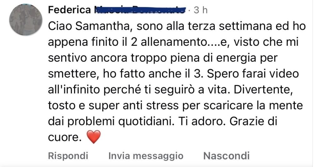 “Mi sono sentita più leggera, più carica di energia, e PIÙ FELICE anche!… Non lo vivi come un dovere, ma come un regalo che stai facendo a te stessa